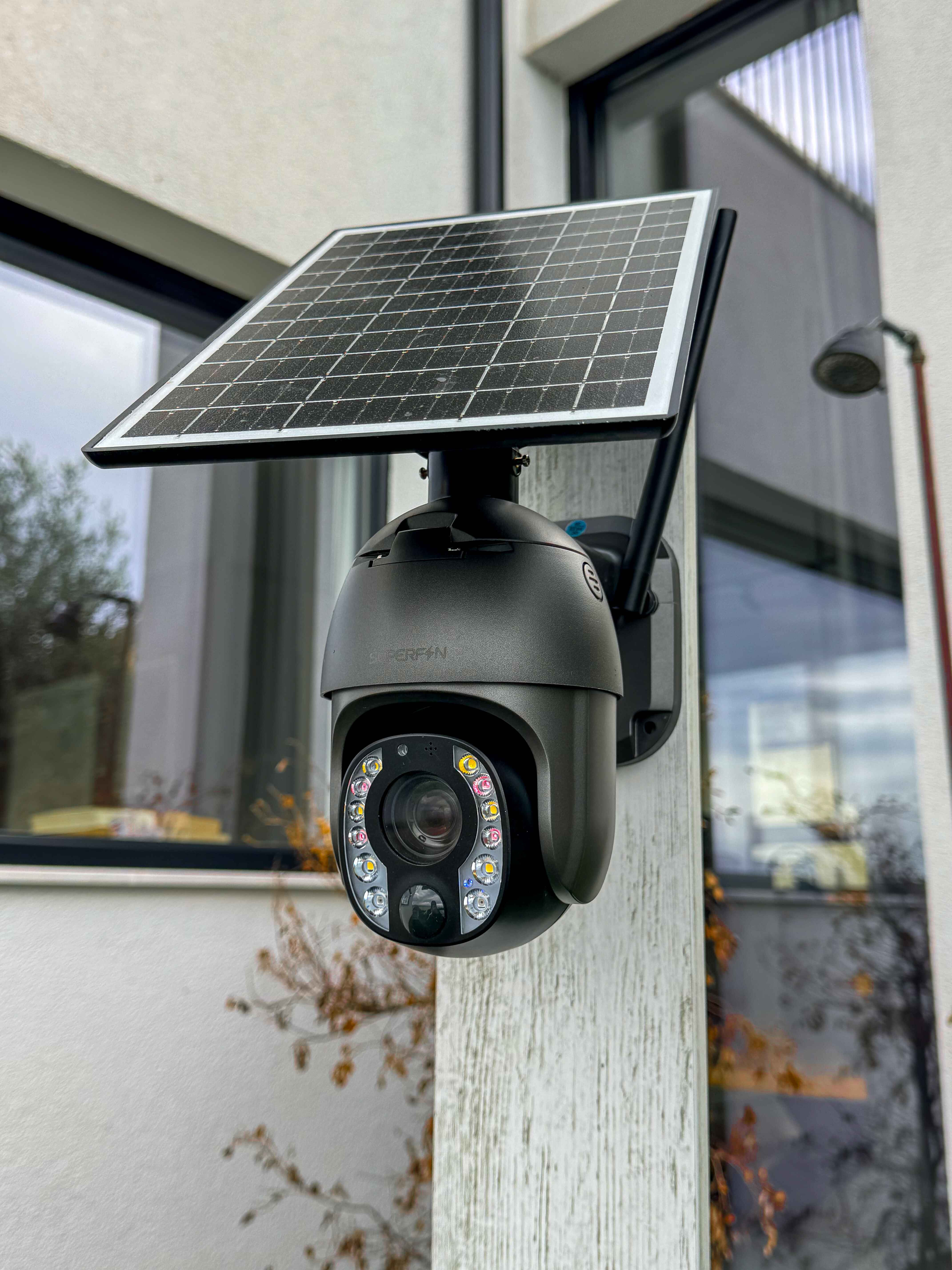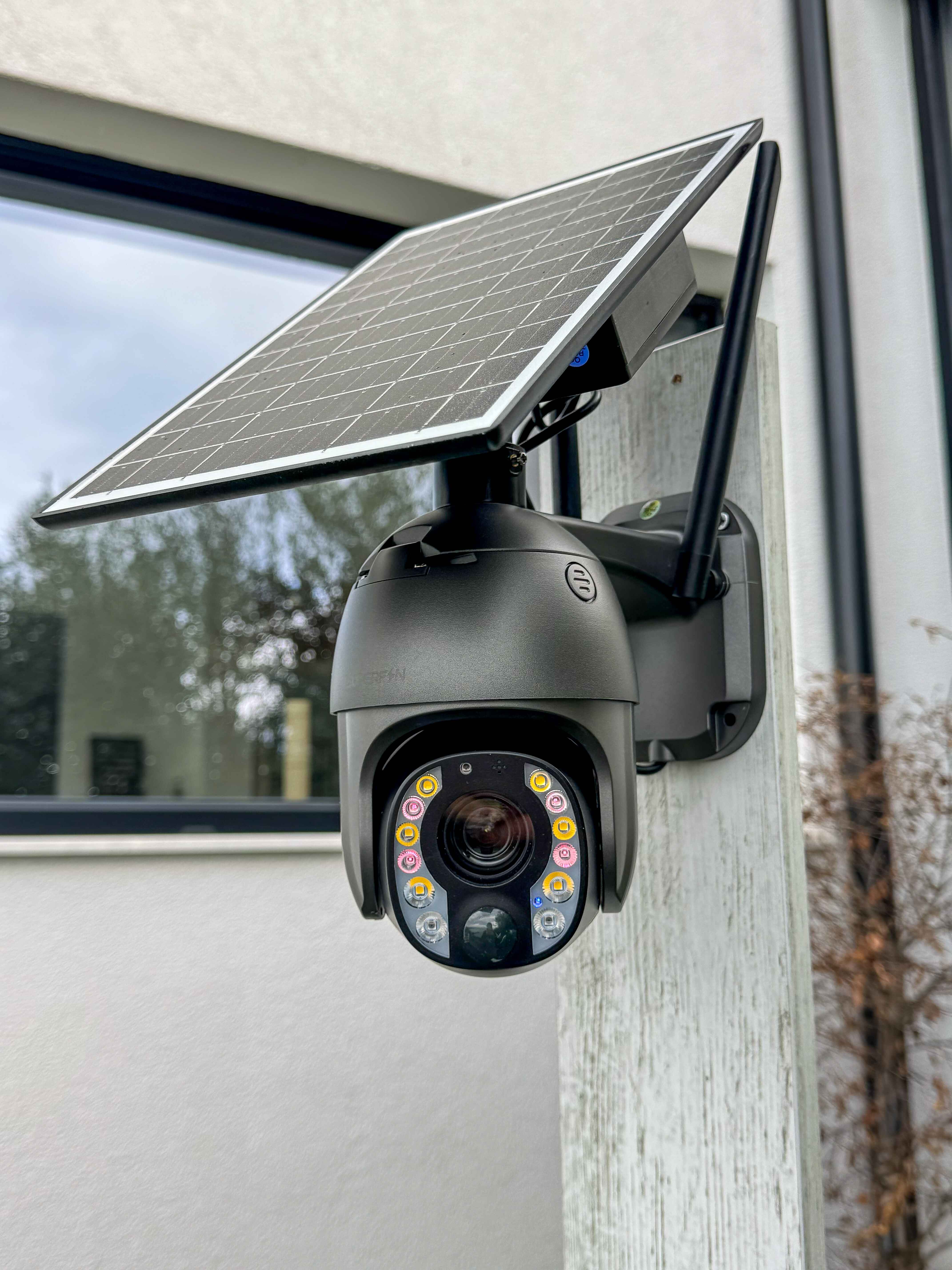 Protect your property with this 4G + WiFi solar-powered PTZ camera featuring 4K Ultra HD resolution, 360° pan, 170° tilt, and night vision up to 55 meters. Equipped with two-way audio, motion-triggered recording, 256GB storage, and IP66 waterproof casing, it offers reliable, remote-controlled security via the UBox app.