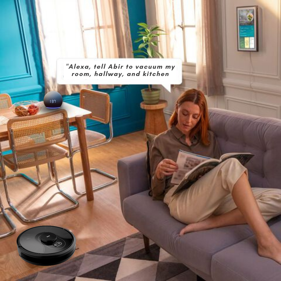 Yes, ABIR X8 works with Alexa and Google Assistant*. You can say commands like “Tell ABIR to mop the kitchen”, “Tell ABIR to vacuum in front of the table” and more.